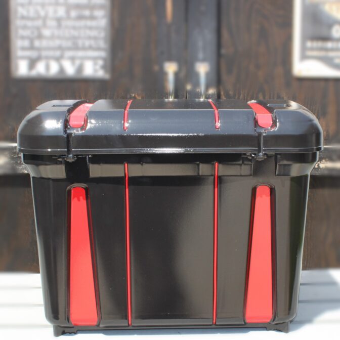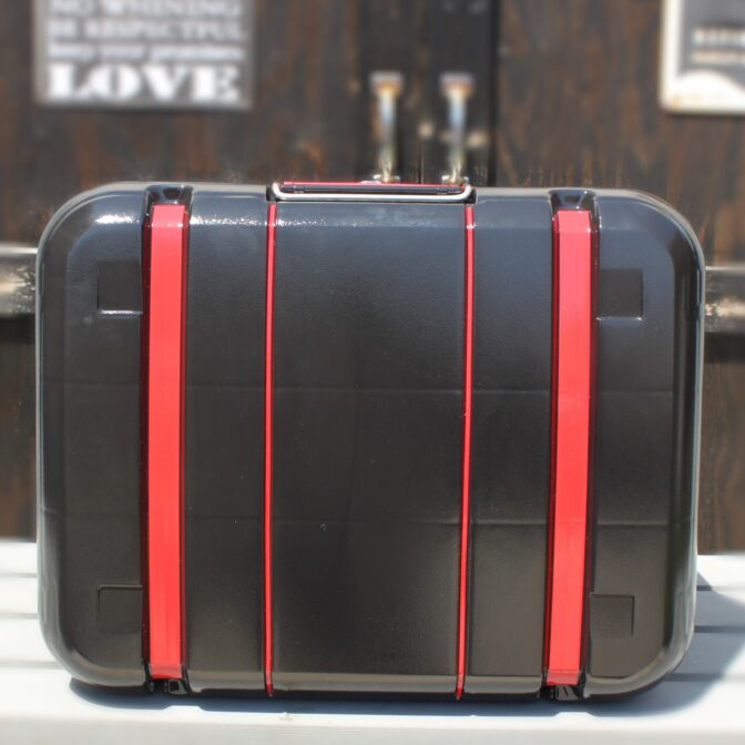 - 側面のミリタリー調のデザインがかわいいと思って、注文しました。 他のリアボックスは黒一色なのでバイクカラーでデザインされた物をネットで見つけて、 即購入しました。